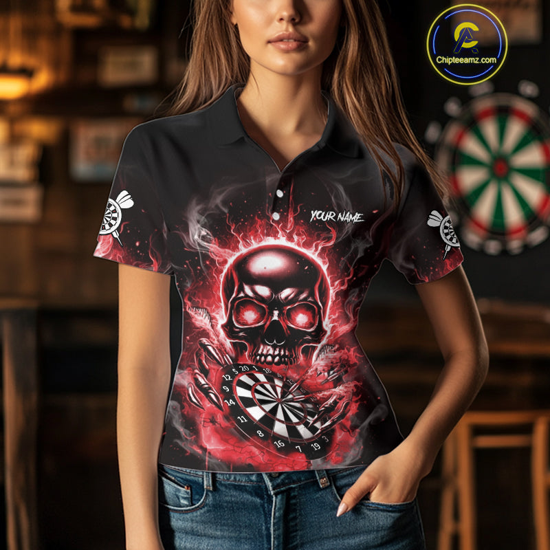 Custom Fire Flame Dartboard Lightning Red Skull Dart Women Polo Jerseys Dart Team Shirt NYN1673