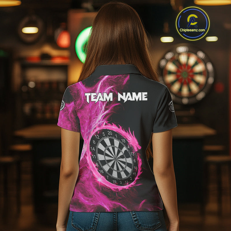 Custom Black-Pink Dragon Lightning Dartboard Dart Women Polo Jerseys Dart Team Shirt NYN1690