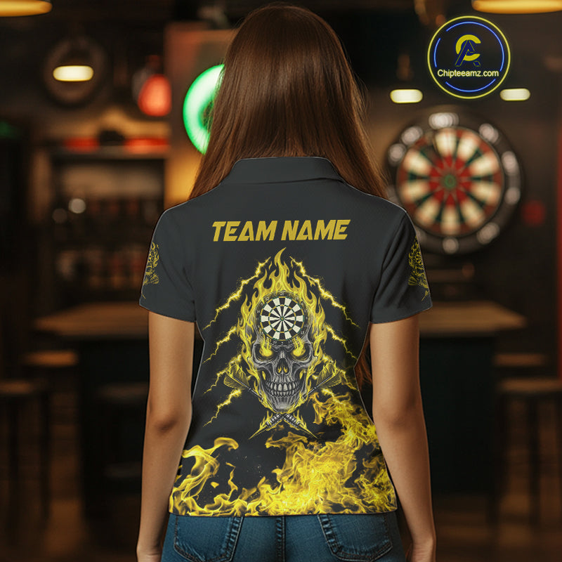 Custom Yellow Flames Skull Dart Arrow Women Men Polo Jerseys Flame Dart Team Shirt NYN1709