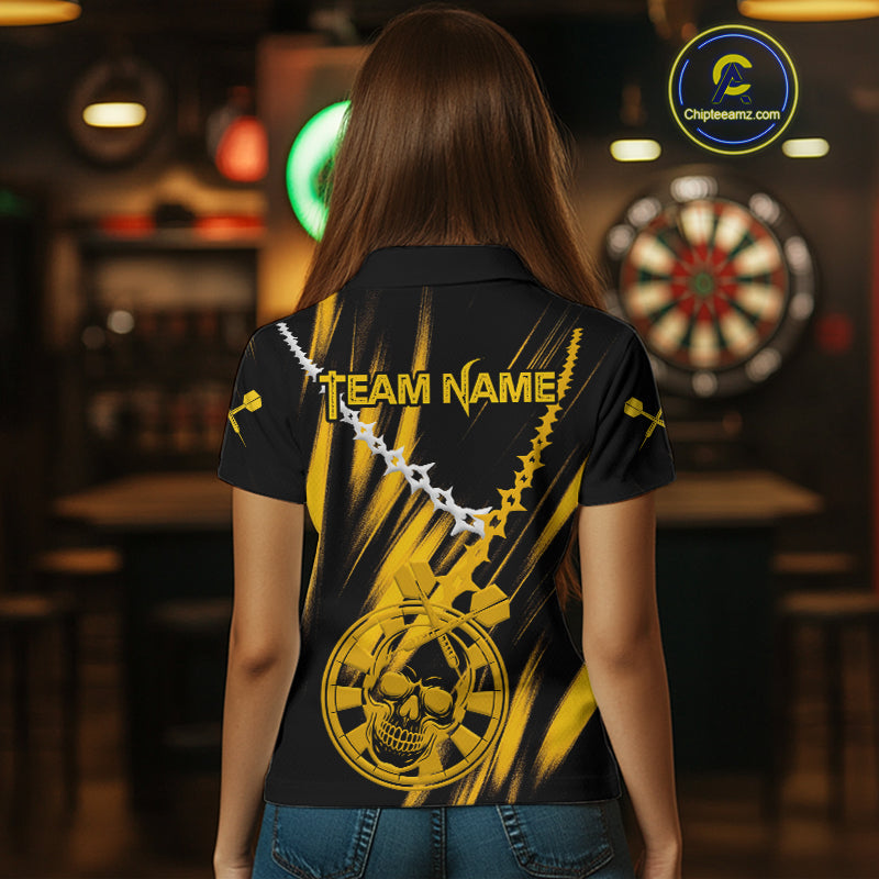 Custom White Chain Yellow Skull Dartboard Dart Women Polo Jerseys Grunge Dart Shirt NYN1716
