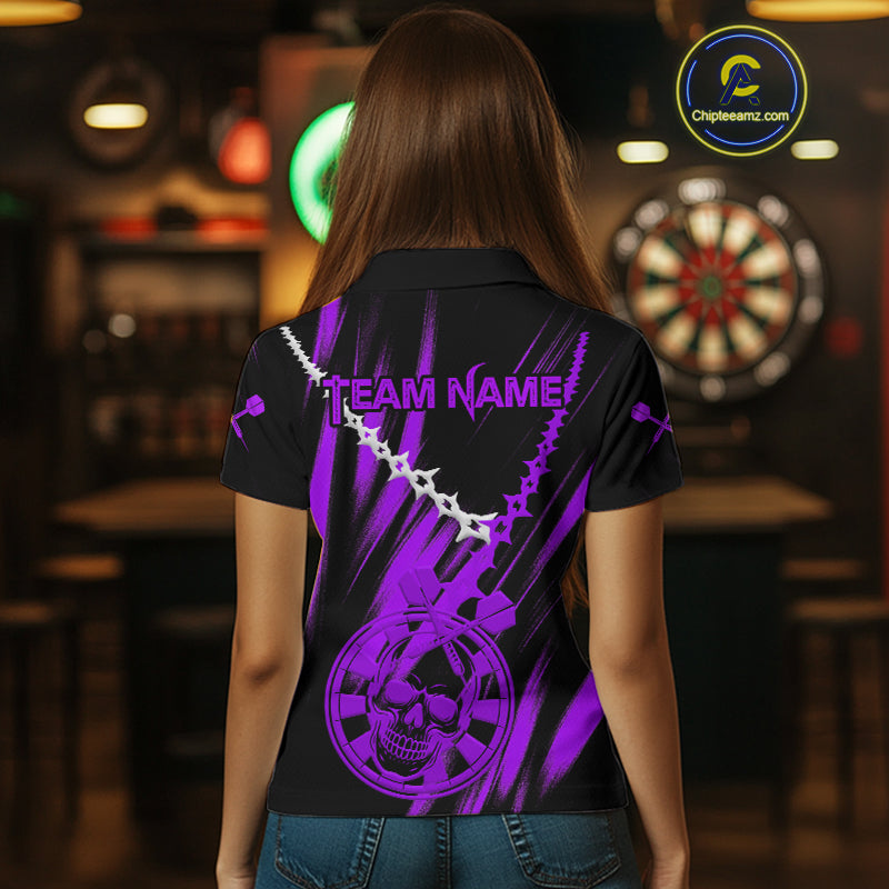 Custom White Chain Purple Skull Dartboard Dart Women Polo Jerseys Grunge Dart Shirt NYN1717