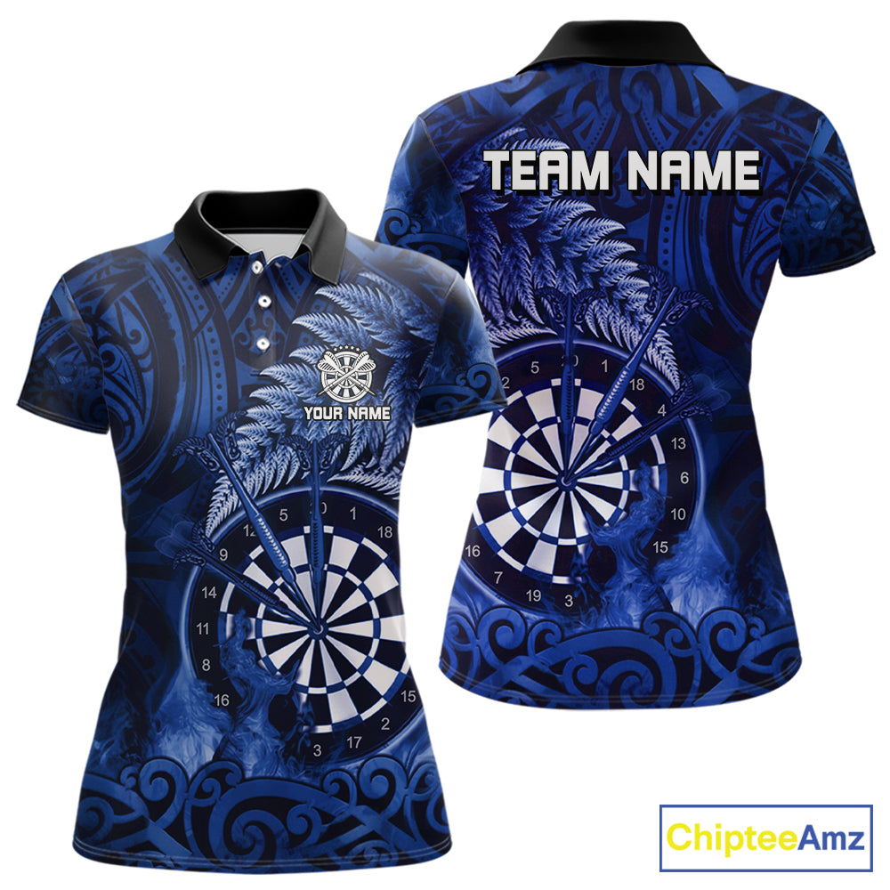 Personalized Fern Leaves Blue Fire Tribal Dart Polo Shirts For Women Dart Team Jerseys NYN2193