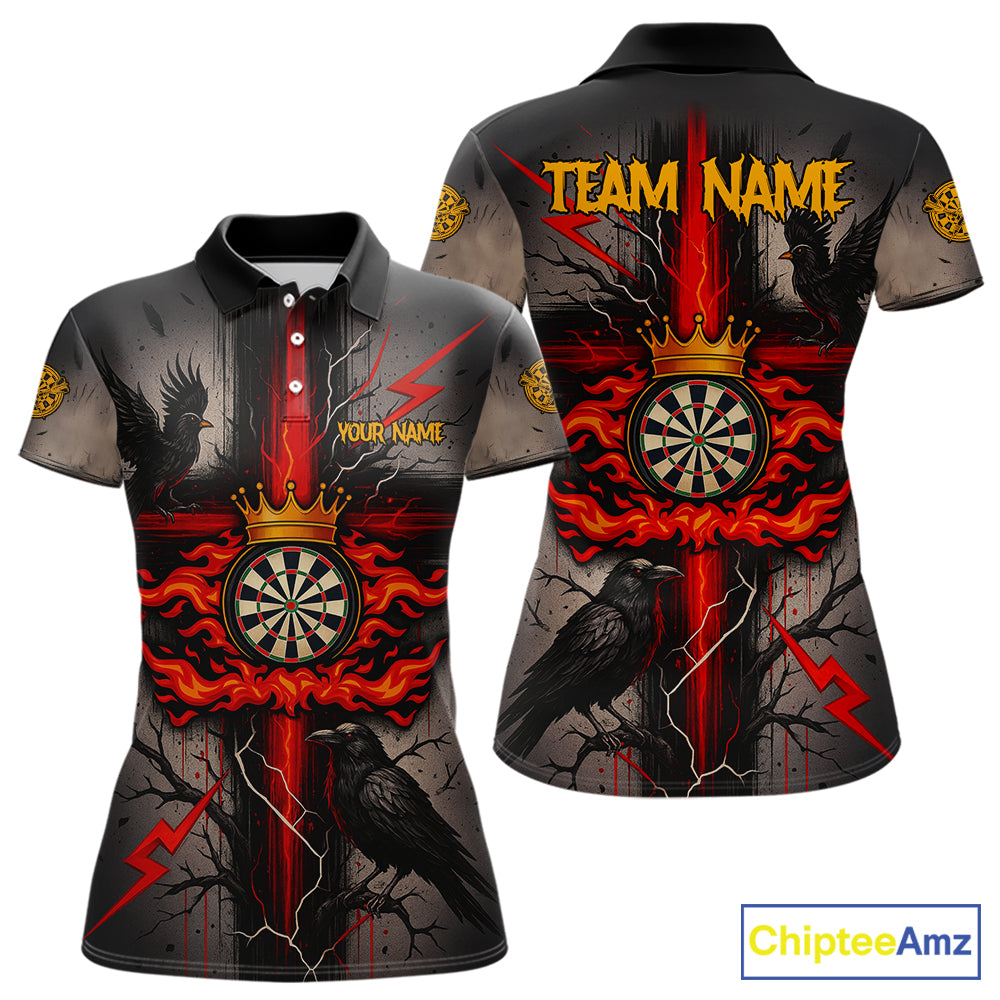 Personalized Raven Red Flames Crown Darts Polo Shirts For Women Cross Dart Gothic Jerseys NYN2194