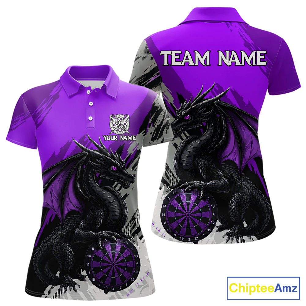 Purple Grunge Dragon Dartboard Custom Women Darts Polo League Shirts Dragon Dart Jerseys NYN2238
