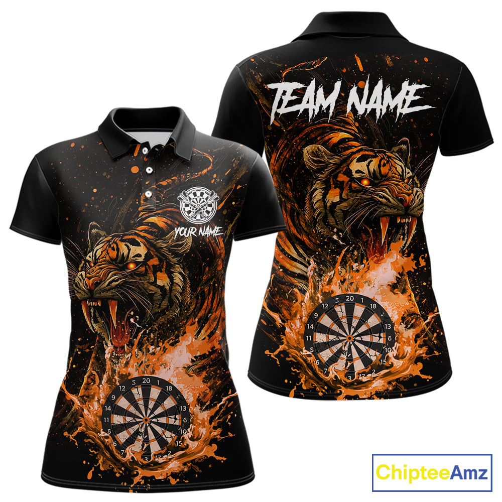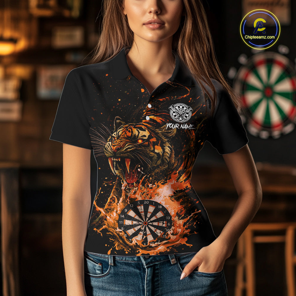 Custom Orange Horror Tiger Grunge Women Darts Polo League Shirts Splatter Dart Jerseys NYN2251