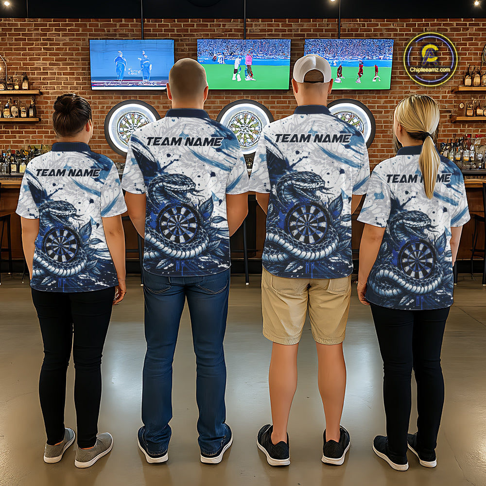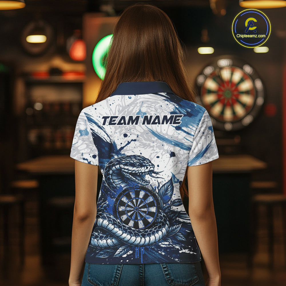 Custom White And Blue Splatter Cobra Dartboard Women Darts Polo Shirts Grunge Dart Jerseys NYN2269