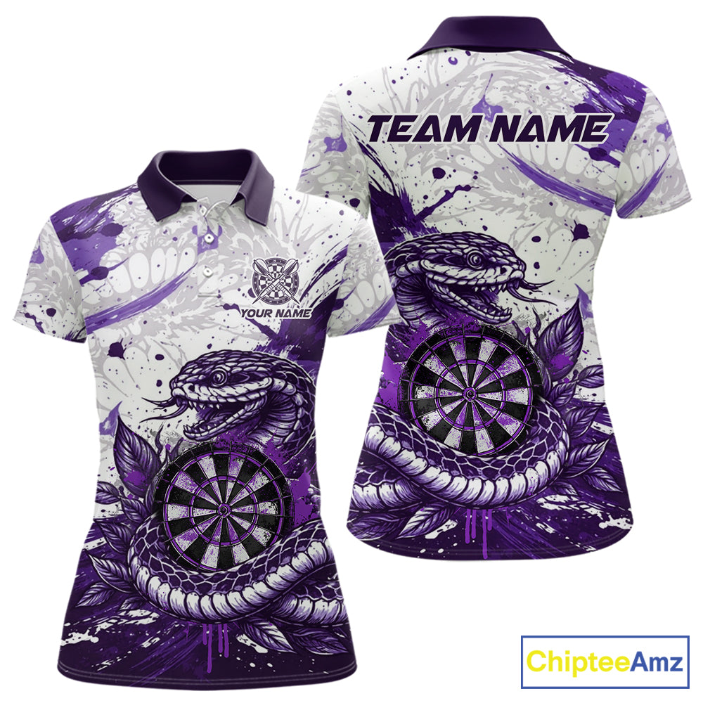 Custom White And Purple Splatter Cobra Dartboard Women Darts Polo Shirts Grunge Dart Jerseys NYN2270