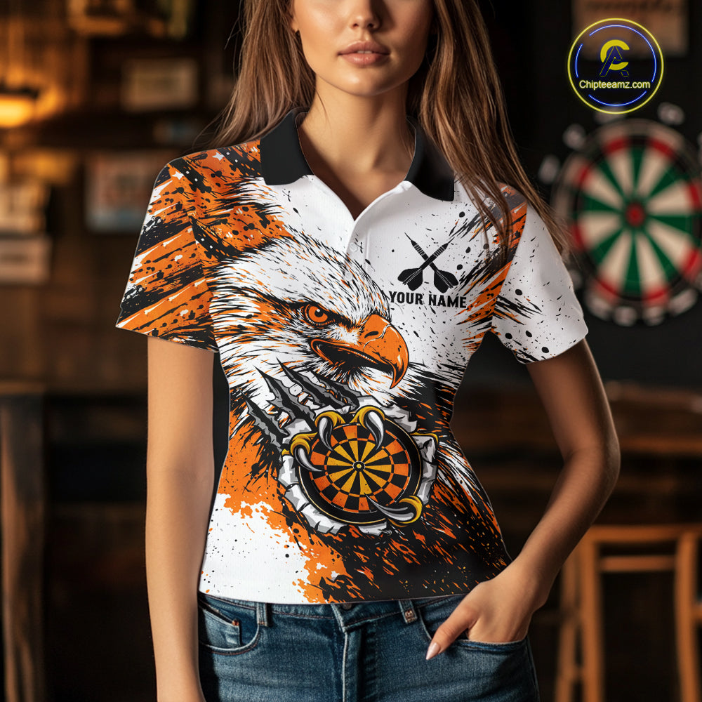 Custom Orange Grunge Eagle Scratch Dartboard Women Darts Polo Shirts Dart Team Jerseys NYN2271