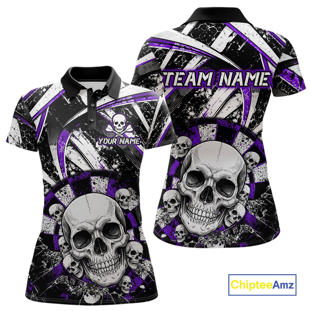 Black & Purple Dartboard Grunge Women Darts Polo Shirts Custom Multi-Skull Dart Team Jerseys NYN2350
