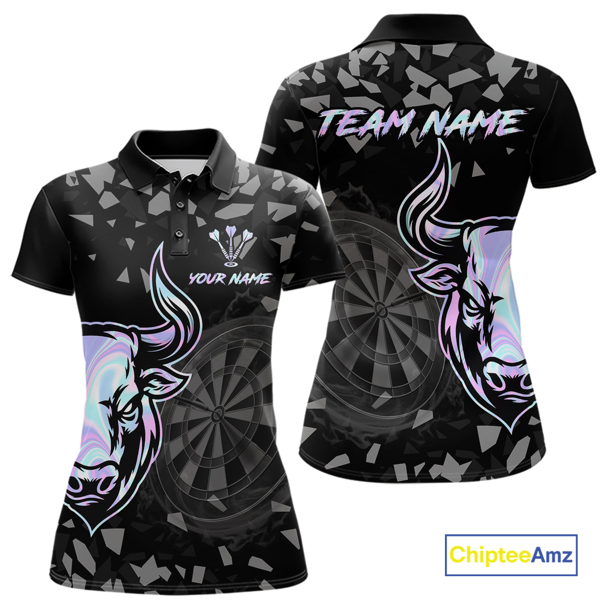 Bull & Dartboard Custom Grunge Women Darts Polo Shirt Holographic Darts Team Jersey NYN2353