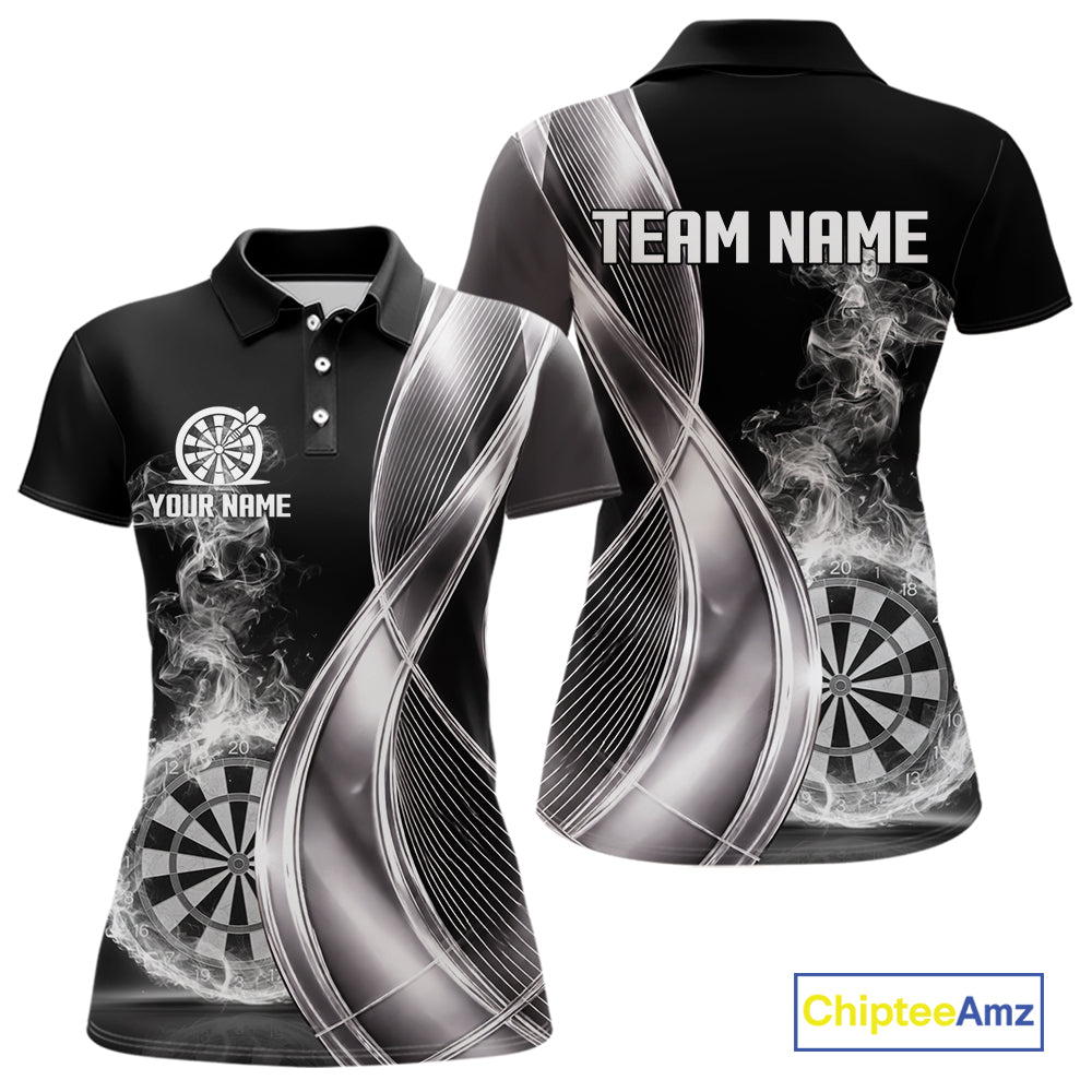 Black And Silver Darts Polo Shirts For Women Custom White Smoke Dartboard Dart Team Jerseys NYN2446