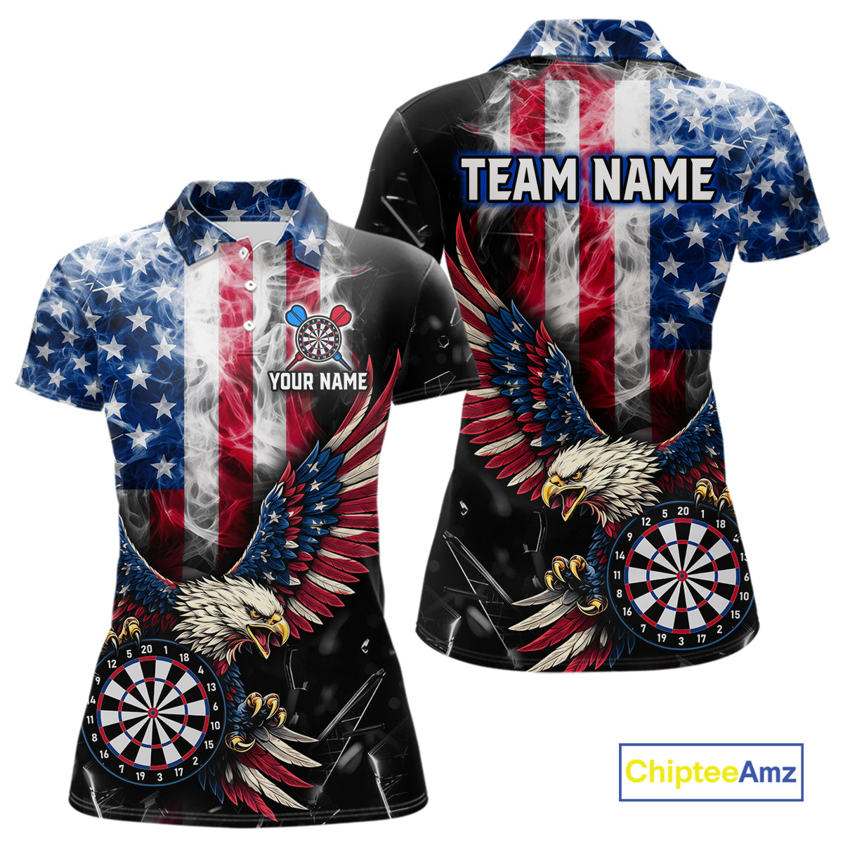 Smoking US Flag & Eagle Dartboard Women Darts Polo Shirt Custom Patriotic Dart Team Jerseys NYN2511
