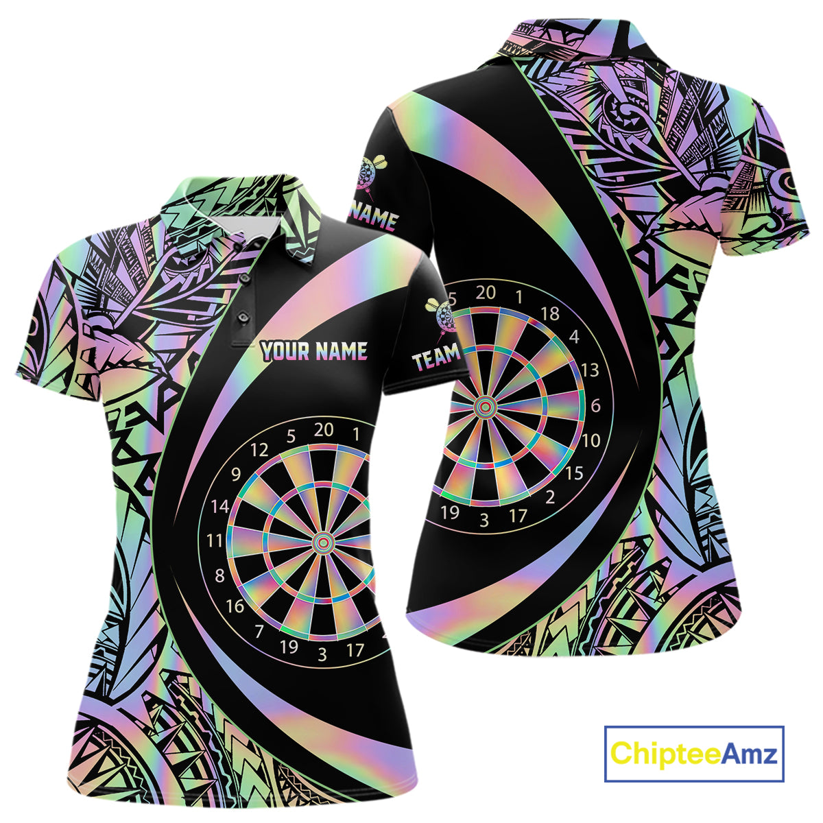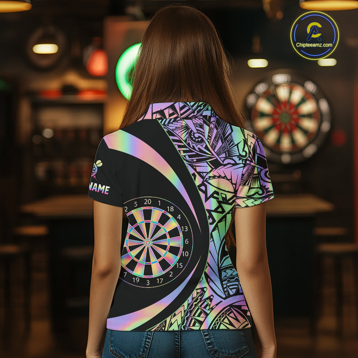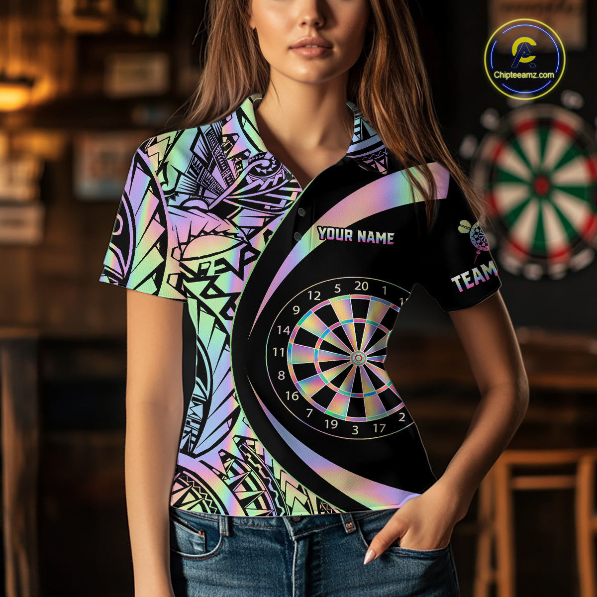Black & Holographic Rainbow Tribal Dartboard Darts Polo Shirt For Women Custom Dart Team Jerseys NYN2522