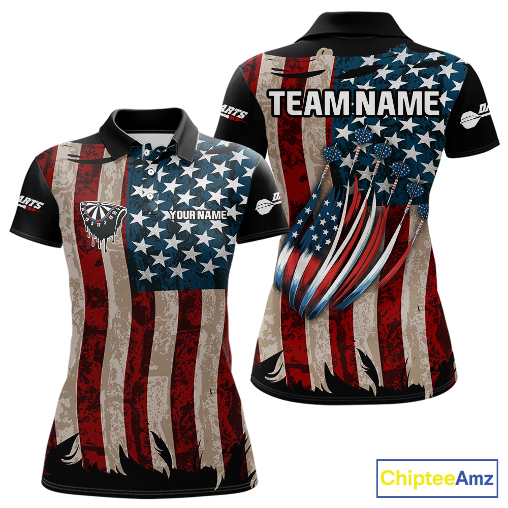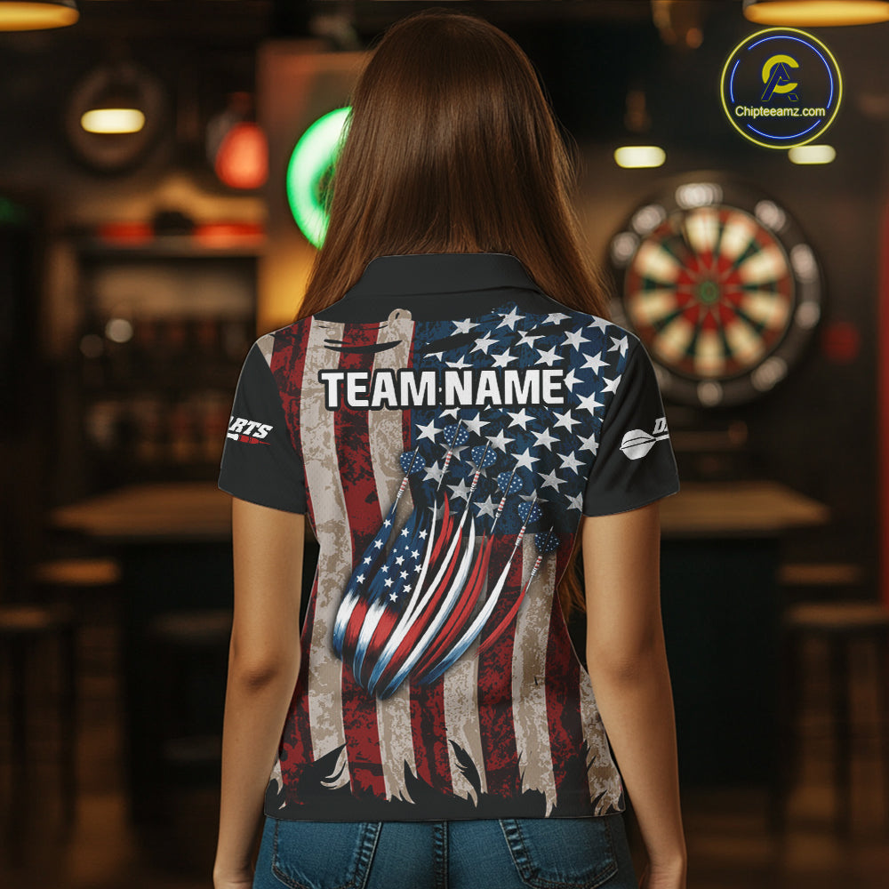 US Flag Dart Arrow & Dartboard Darts Polo Shirt For Women Custom Patriotic Dart Team Jerseys NYN2523
