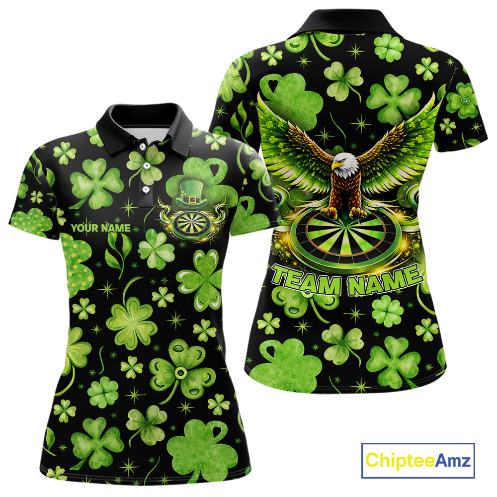 Funny Eagle Dartboard Shamrock Women Darts Polo Shirt Custom St Patrick's Day Darts Team Jersey NYN2531