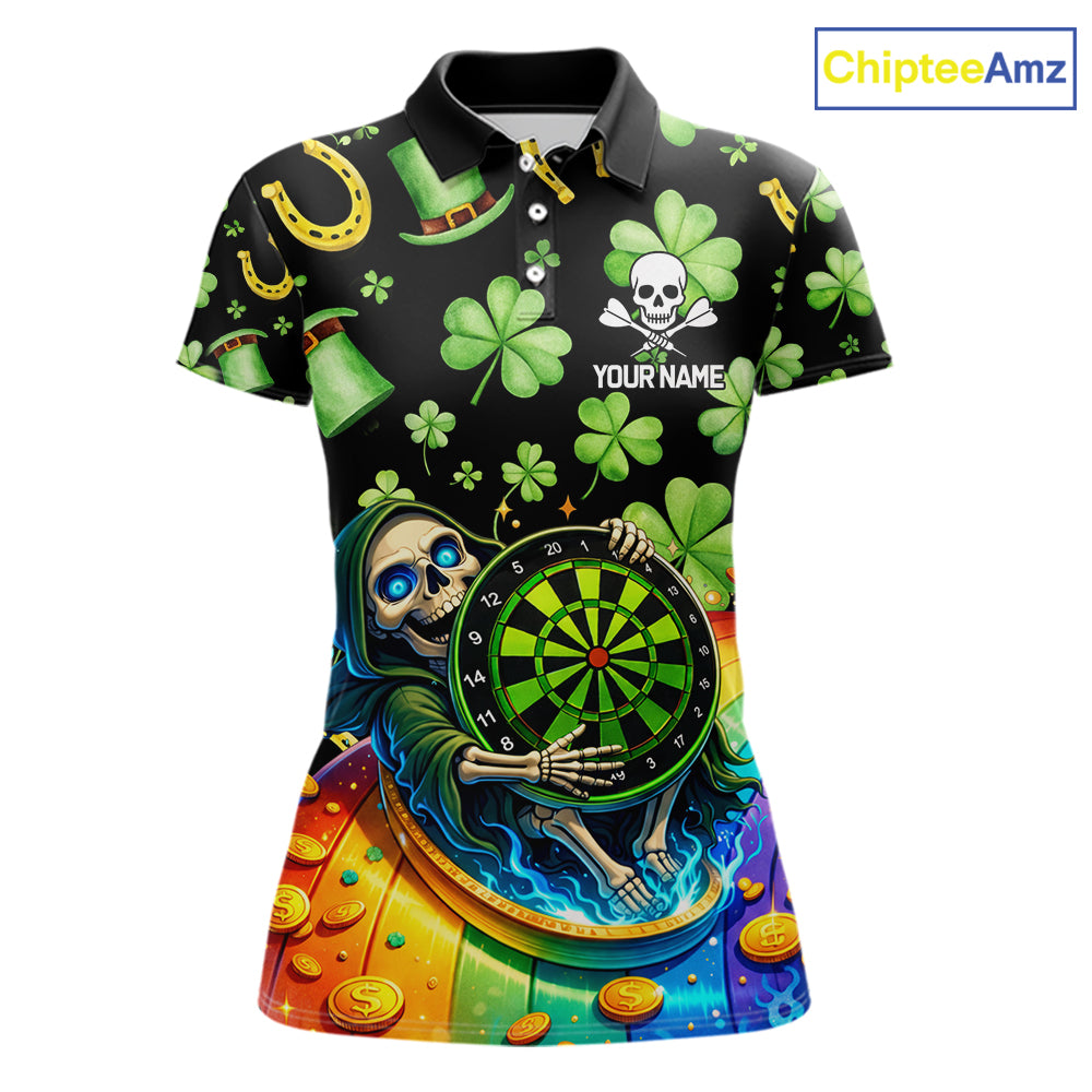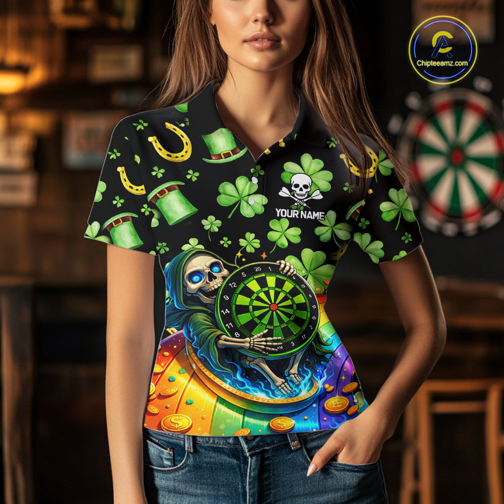 Rainbow Funny Skeleton Green Dartboard Women Darts Polo Shirt Custom St Patrick's Day Darts Jersey NYN2533