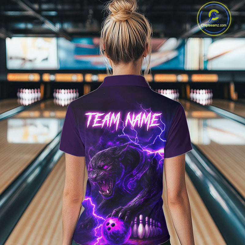 Purple Thunder Lightning Custom Panther Bowling Polo, 1/4 zip Shirt For Women, Panther Bowling Jersey NQS10789