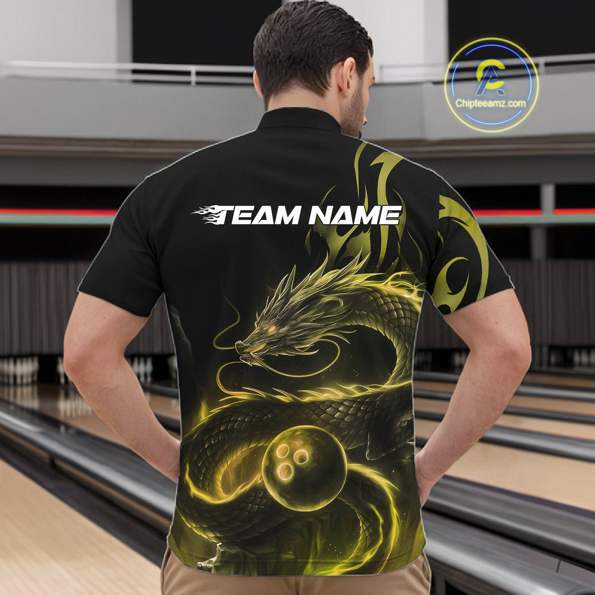 Custom Gold Tribal Flame Dragon Bowlin Team Men Quarter-Zip Shirt, Dragon Bowling Jerseys IPHW10232