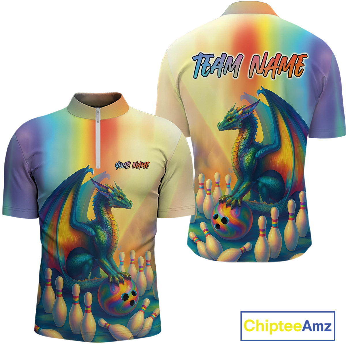 Custom Colorful Rainbow Colors Dragon Bowling Team Shirts, Dragon Bowling League Shirt IPHW10234