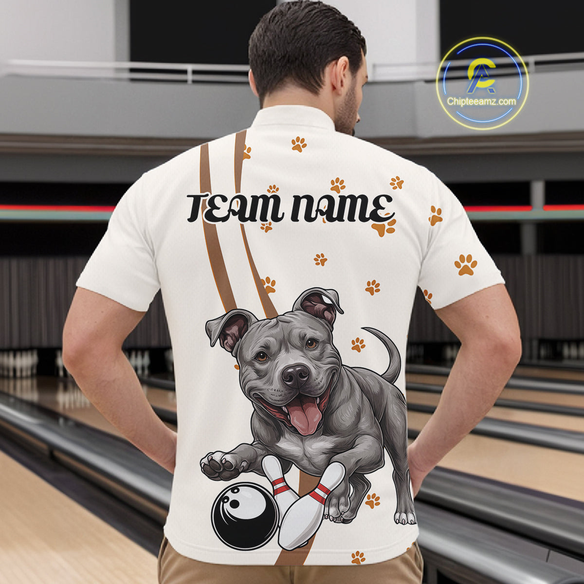 Custom Funny Pitbull Dog Bowling Men Quarter-Zip Shirts, Dog Paw Print Bowler Outfit IPHW10249