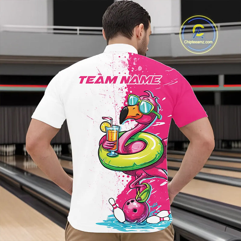 Custom Funny Flamingo Bowling Men Quarter-Zip Shirt, Flamingo Bowling Tourmanent Shirt IPHW10266
