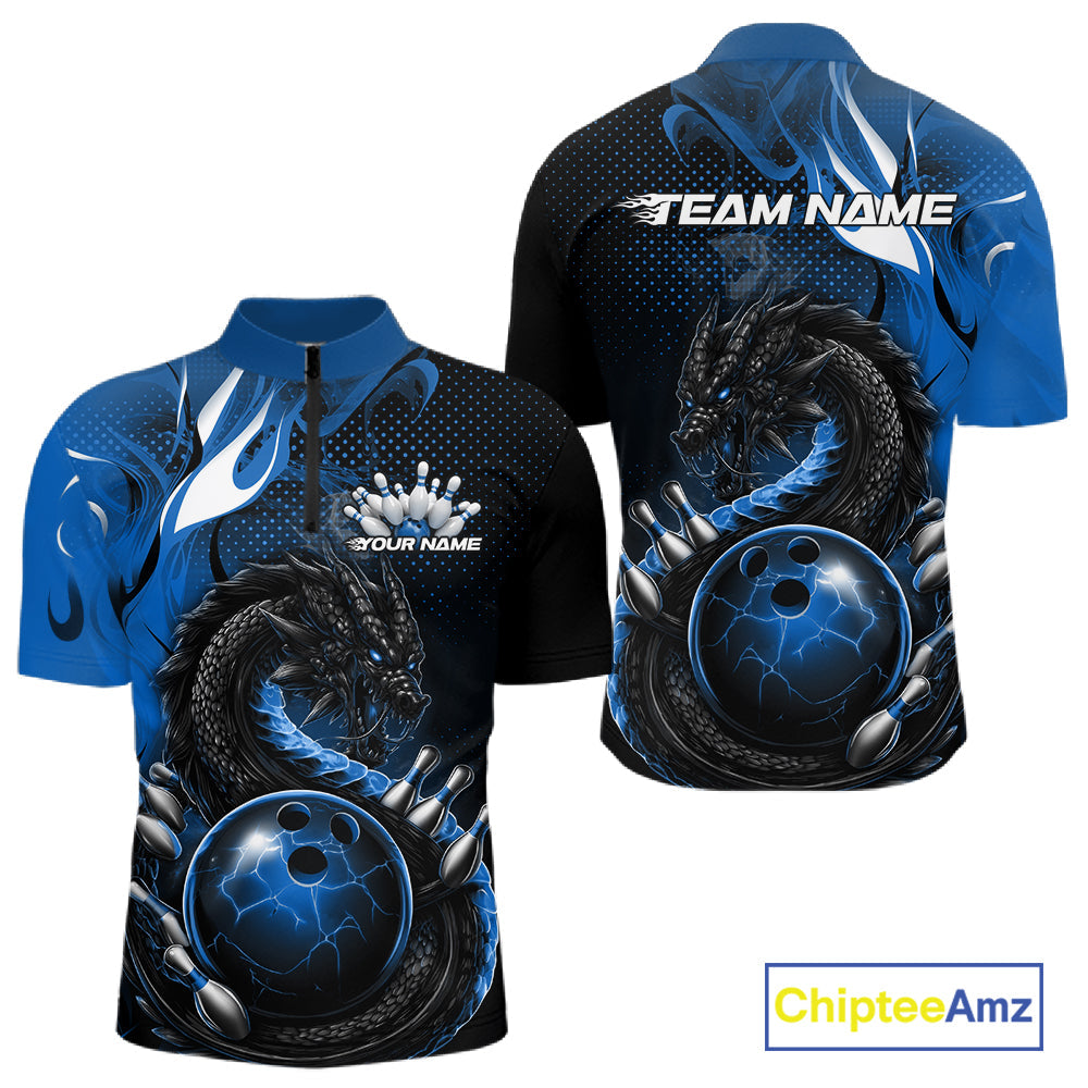 Custom Black And Blue Dragon Bowling Jerseys, Dragon Bowling Team Men Quarter-Zip Shirt IPHW10268