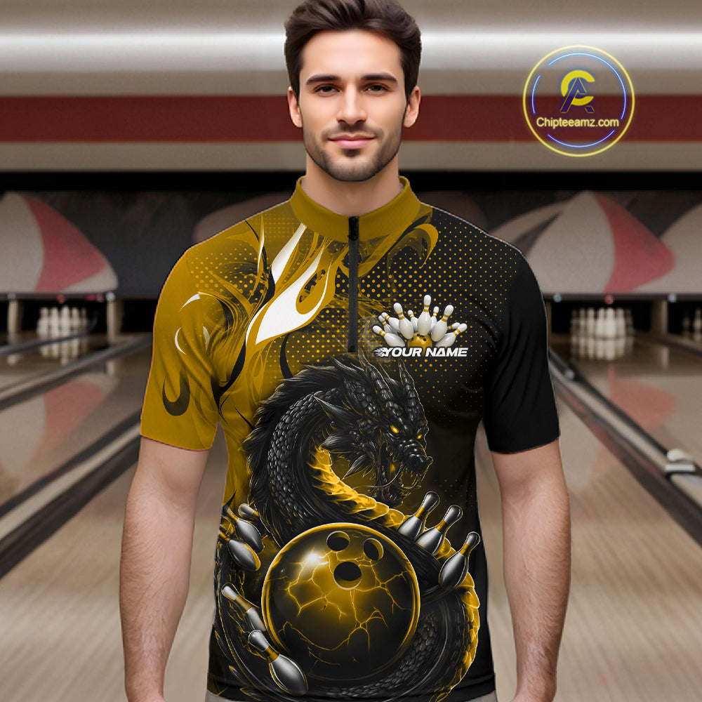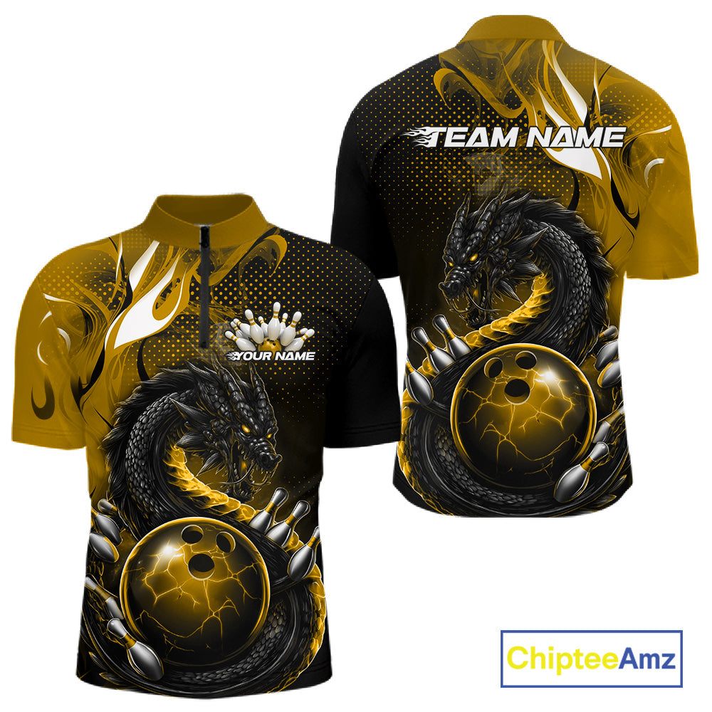 Custom Black And Yellow Dragon Bowling Jerseys, Dragon Bowling Team Men Quarter-Zip Shirt IPHW10270