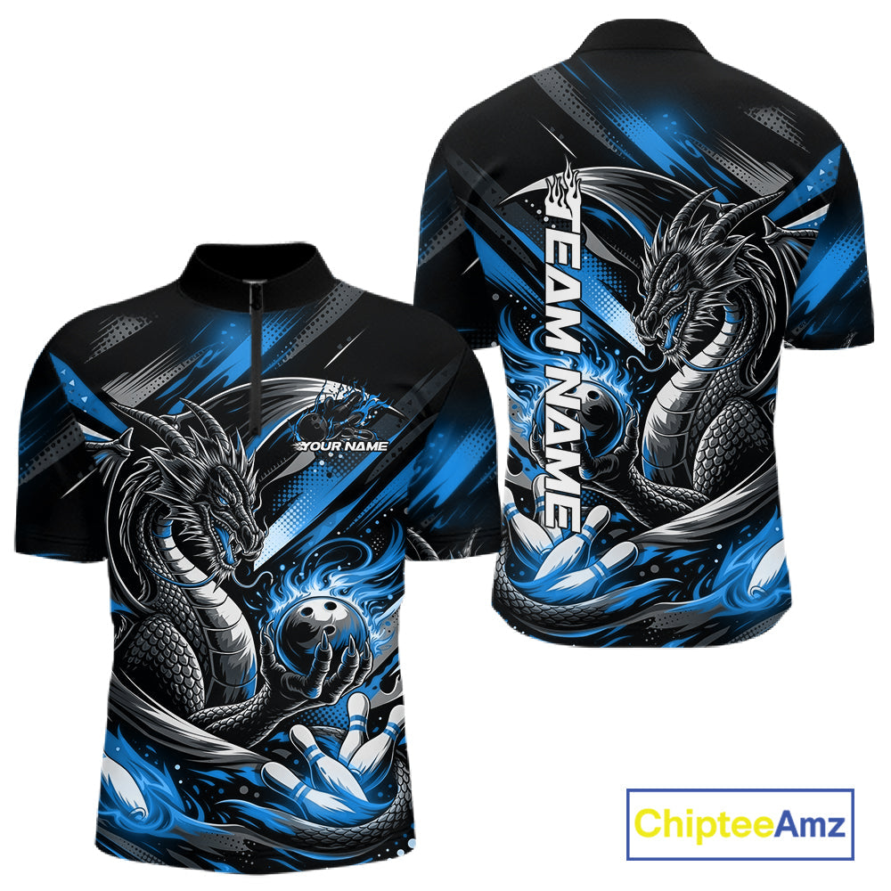 Personalized Black And Blue Dragon Bowling Team Jerseys, Dragon Bowling Quarter-Zip Shirt IPHW10300