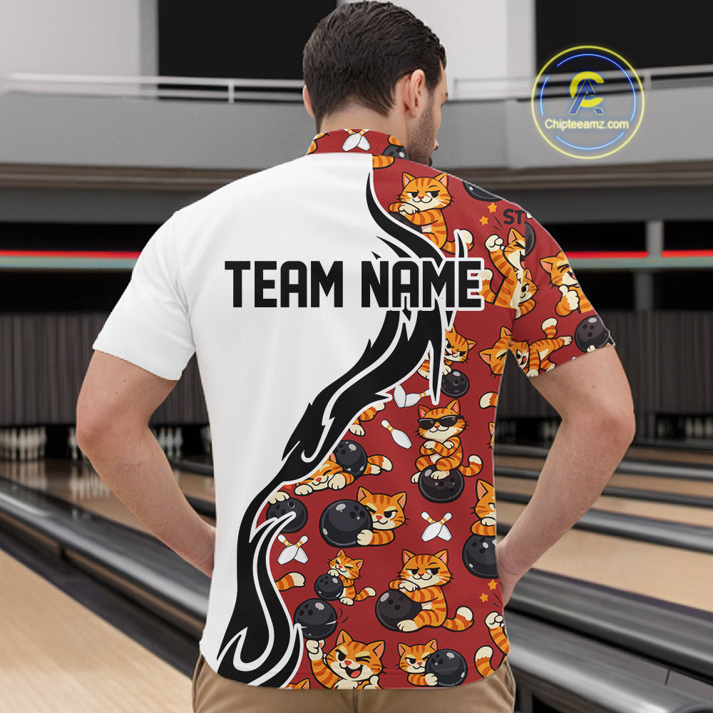 Custom Cute Funny Ginger Tabby Cat Bowling Men Quarter-Zip Shirts, Cat Bowling Team Shirt IPHW10318