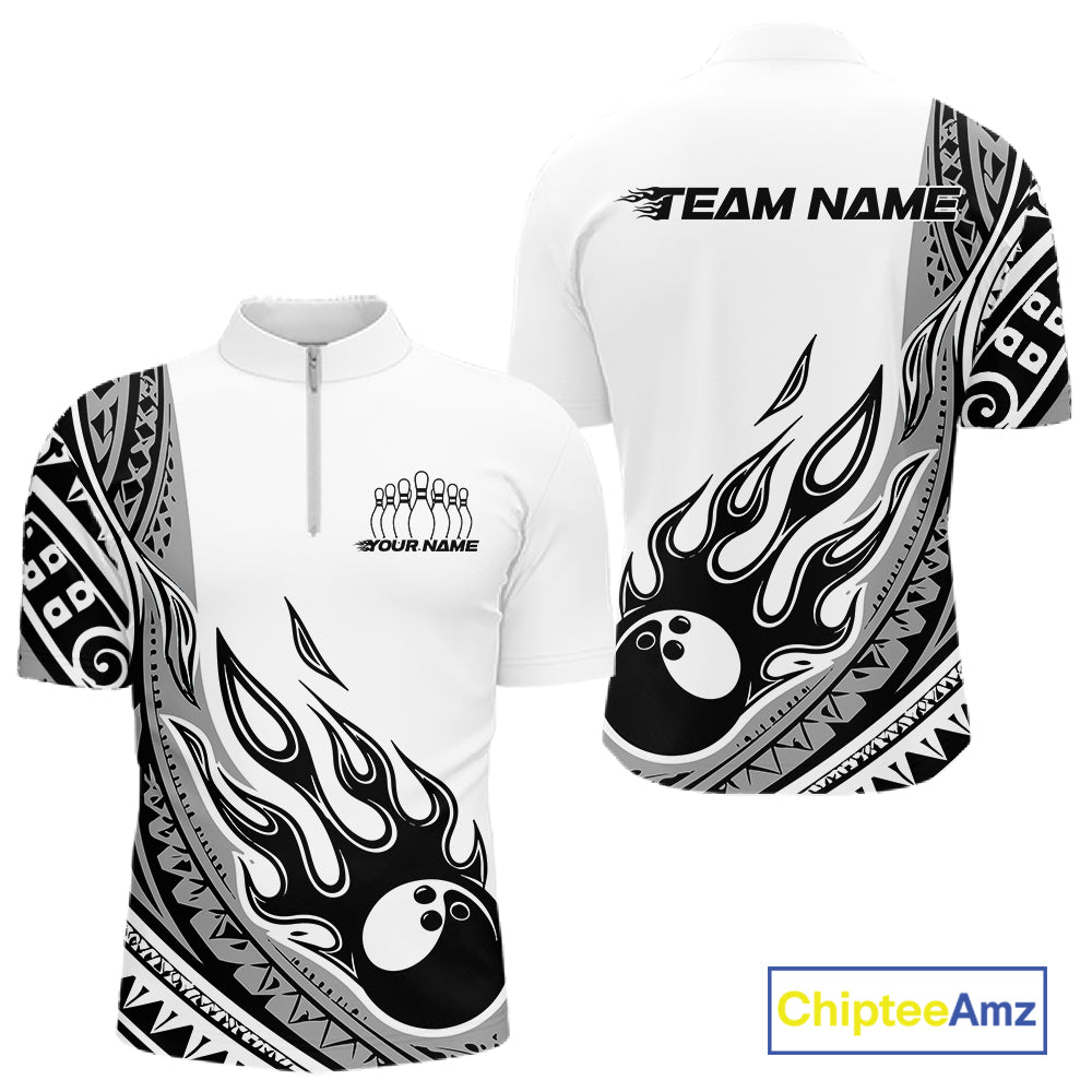 Custom Gray Tribal Polynesian Pattern Men Bowling Team Shirt, Maori Style Bowling Outfit IPHW10328