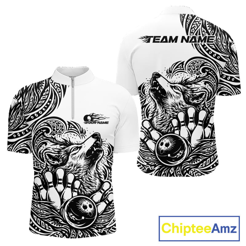 Custom Black And White Tribal Pattern Maori Style Wolf Bowling Team Men Quarter-Zip Shirts IPHW10330