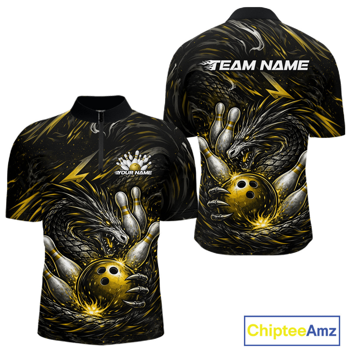 Custom Black And Gold Dragon Bowling Jerseys, Dragon Bowling Team Men Quarter-Zip Shirt IPHW10364