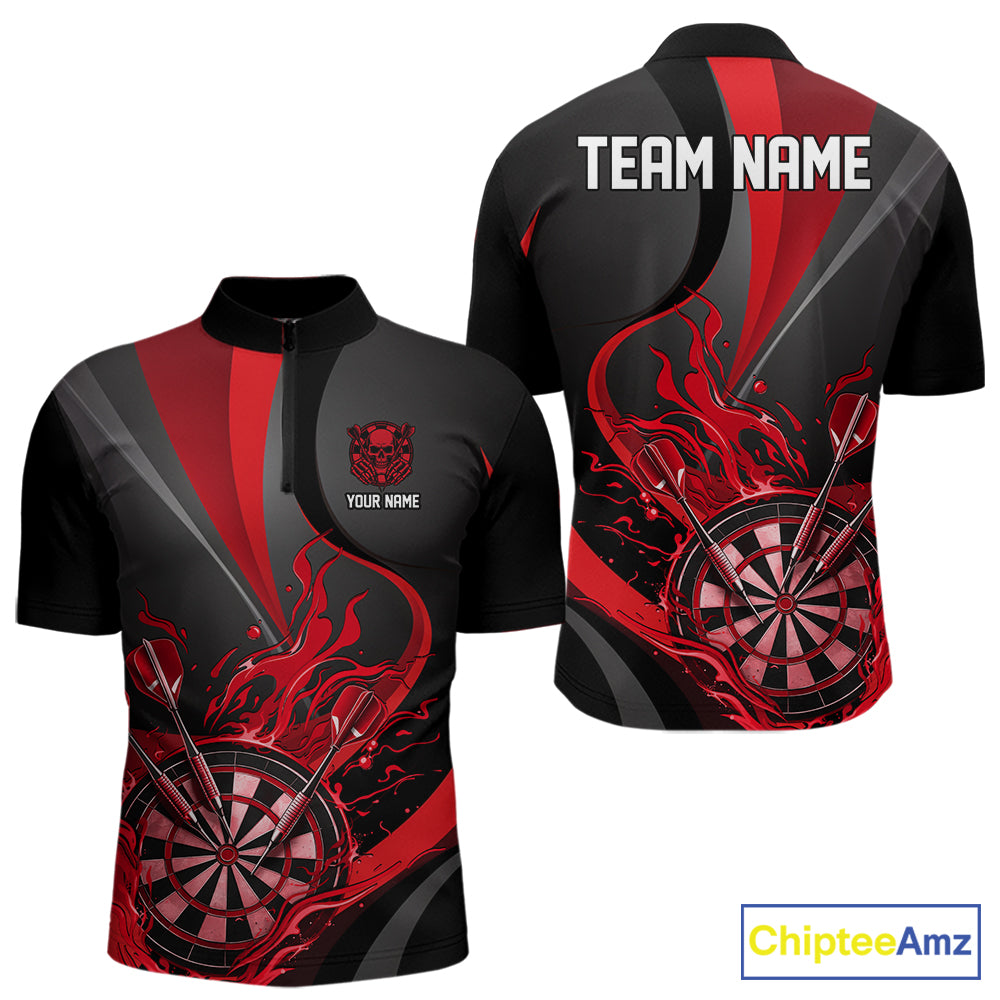 Custom Black And Red Flame Dartboard Darts Team Men Quarter-Zip Shirts, Darts Jerseys IPHW10380
