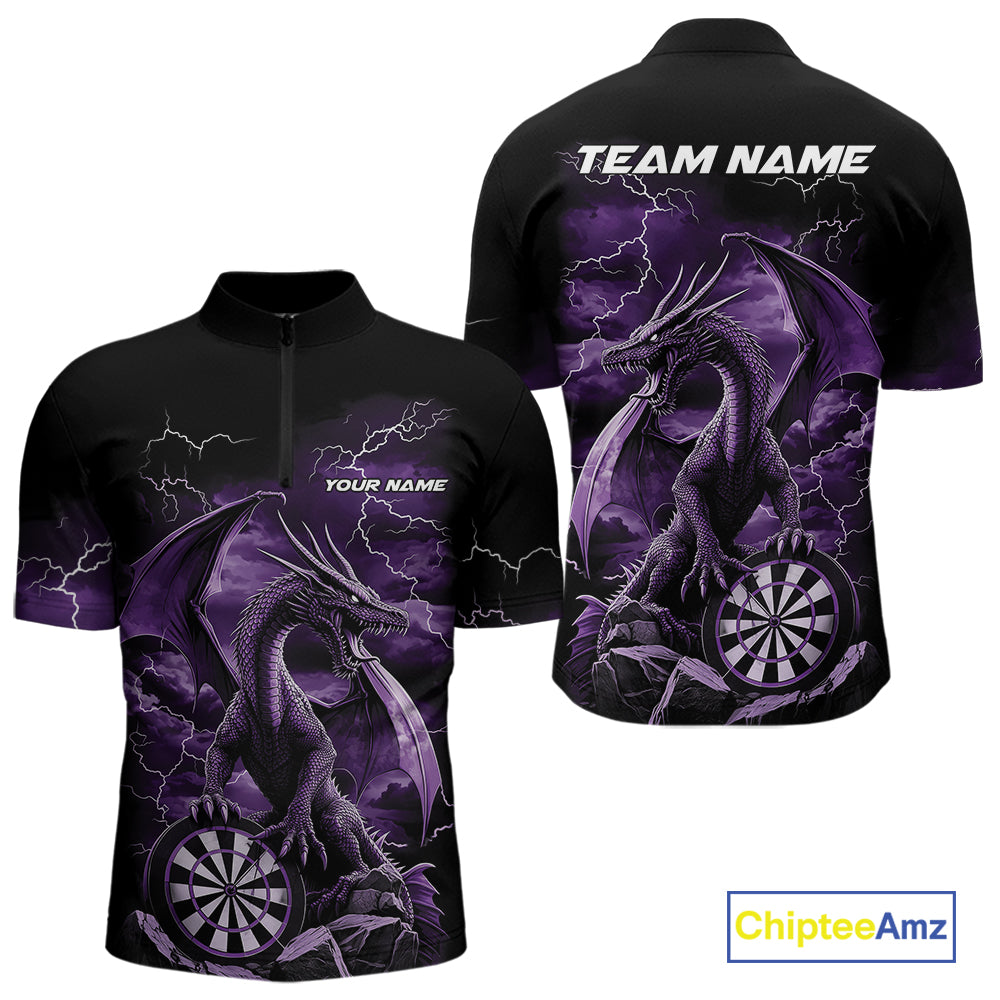 Custom Purple Lightning Dragon Darts Men Quarter-Zip Shirts, Dragon Darts Team Jersey IPHW10383