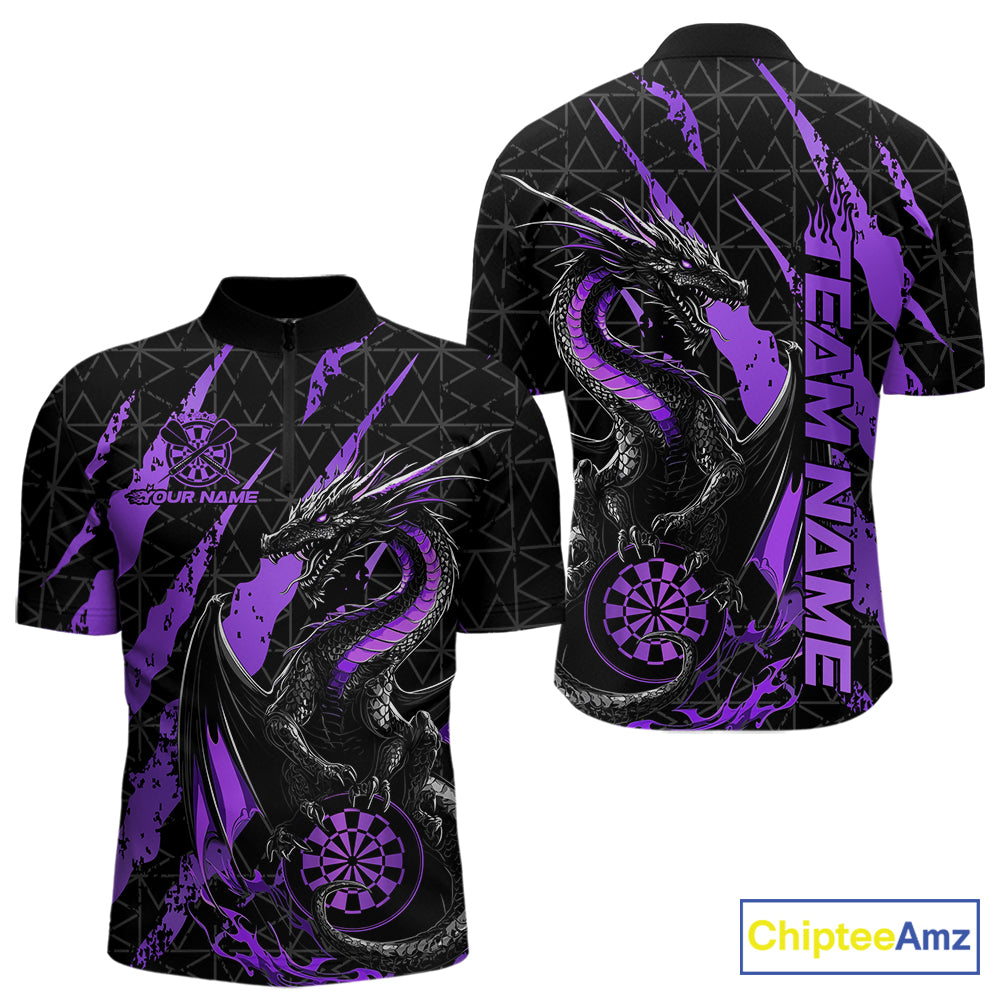 Custom Black And Purple Dragon Dart Men Quarter-Zip Shirts, Team Dart Jerseys IPHW10754