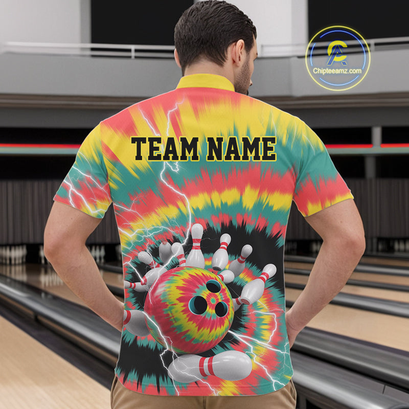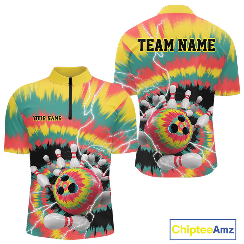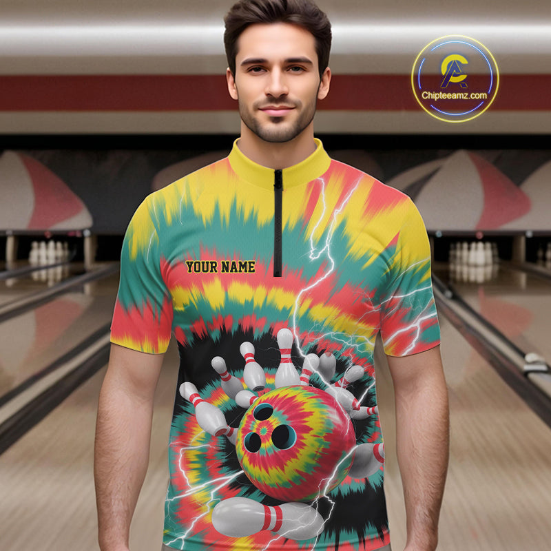 Custom Colorful Tie Dye Bowling Quarter-Zip Shirts For Men, Rainbow Bowling Outfit IPHW9115