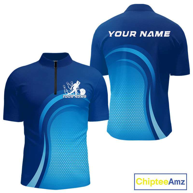 Custom Blue Bowling Team Quarter-Zip Shirts For Men, Bowling Tournament Bowling League Shirt IPHW9236
