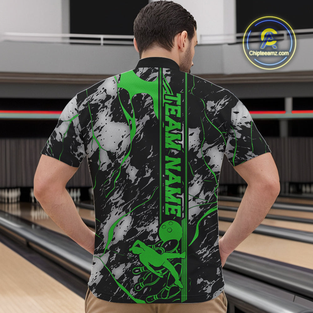 Custom Green And Gray Camo Strike Bowling Quarter-Zip Team Shirts For Men, Strike Bowling Jersey IPHW9243