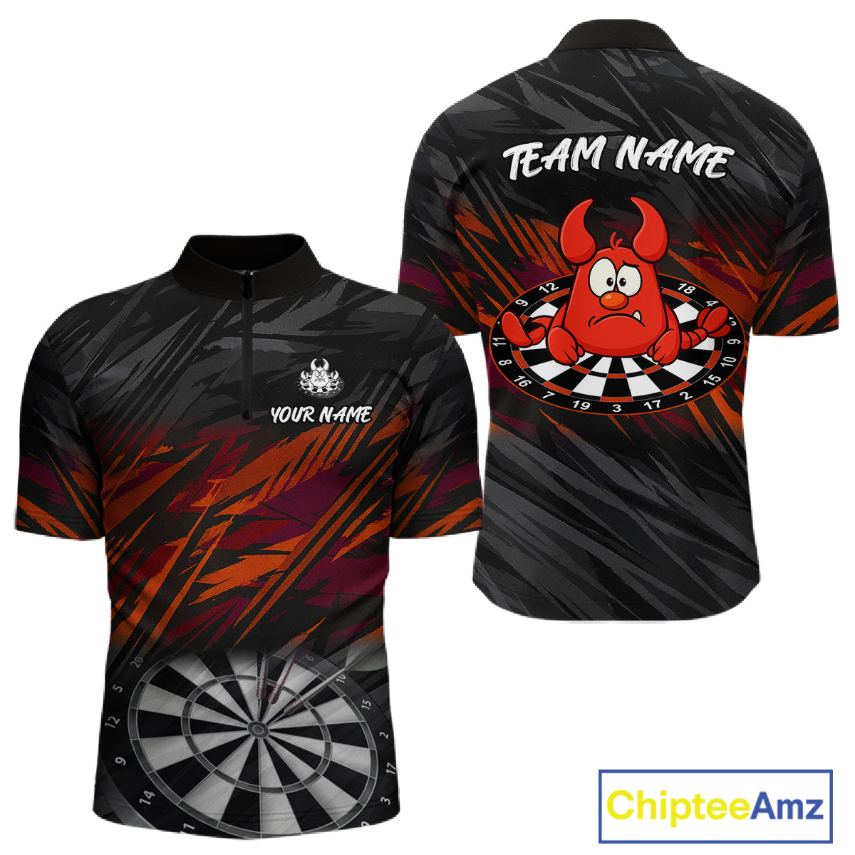Custom Black Orange Funny Lobster Grunge Dart Men Quarter-Zip Shirt Dart Team Jerseys NYN1541