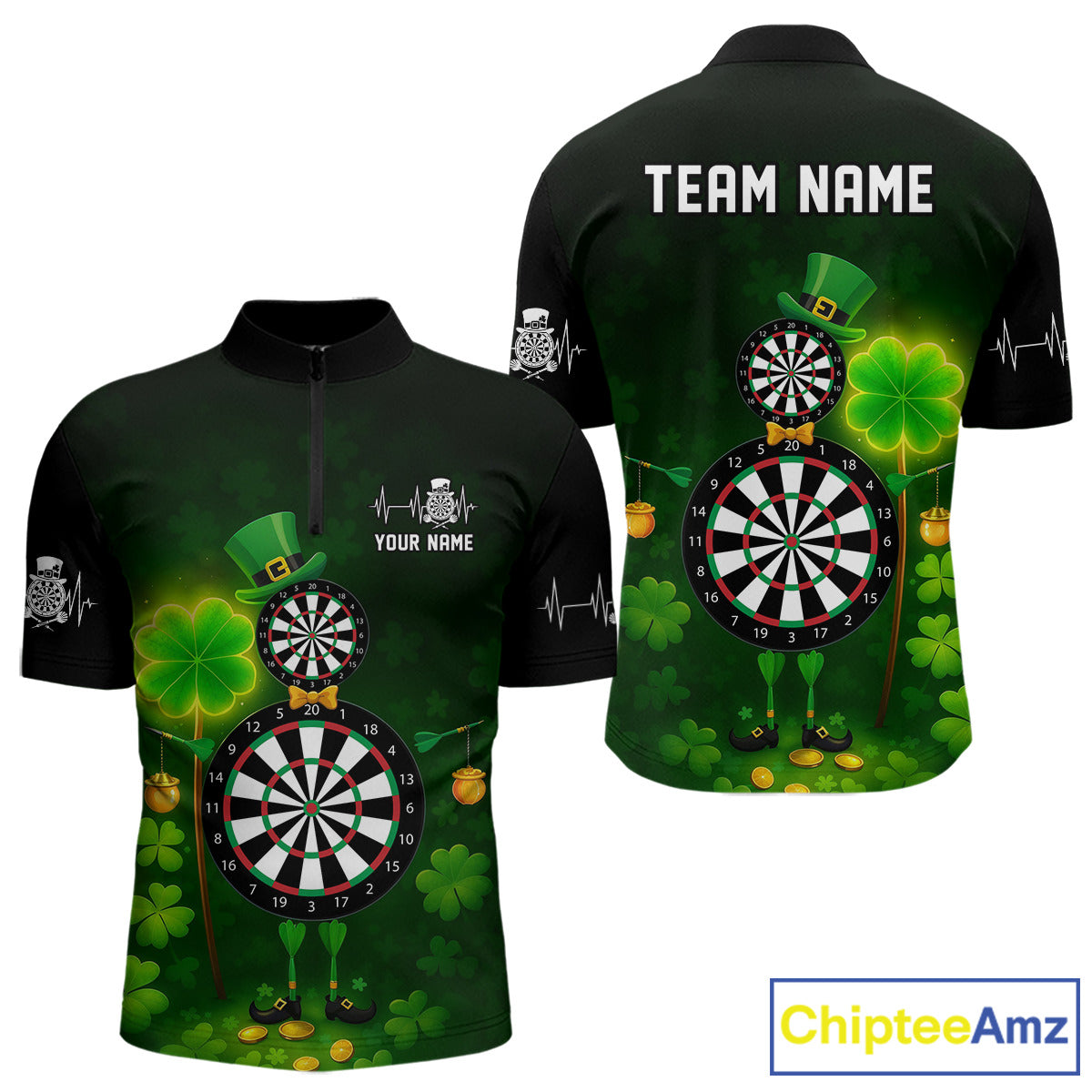 Personalized Funny Dartboard Patrick Day Men Darts Quarter-Zip Shirts Shamrock Dart Team Gifts NYN2185