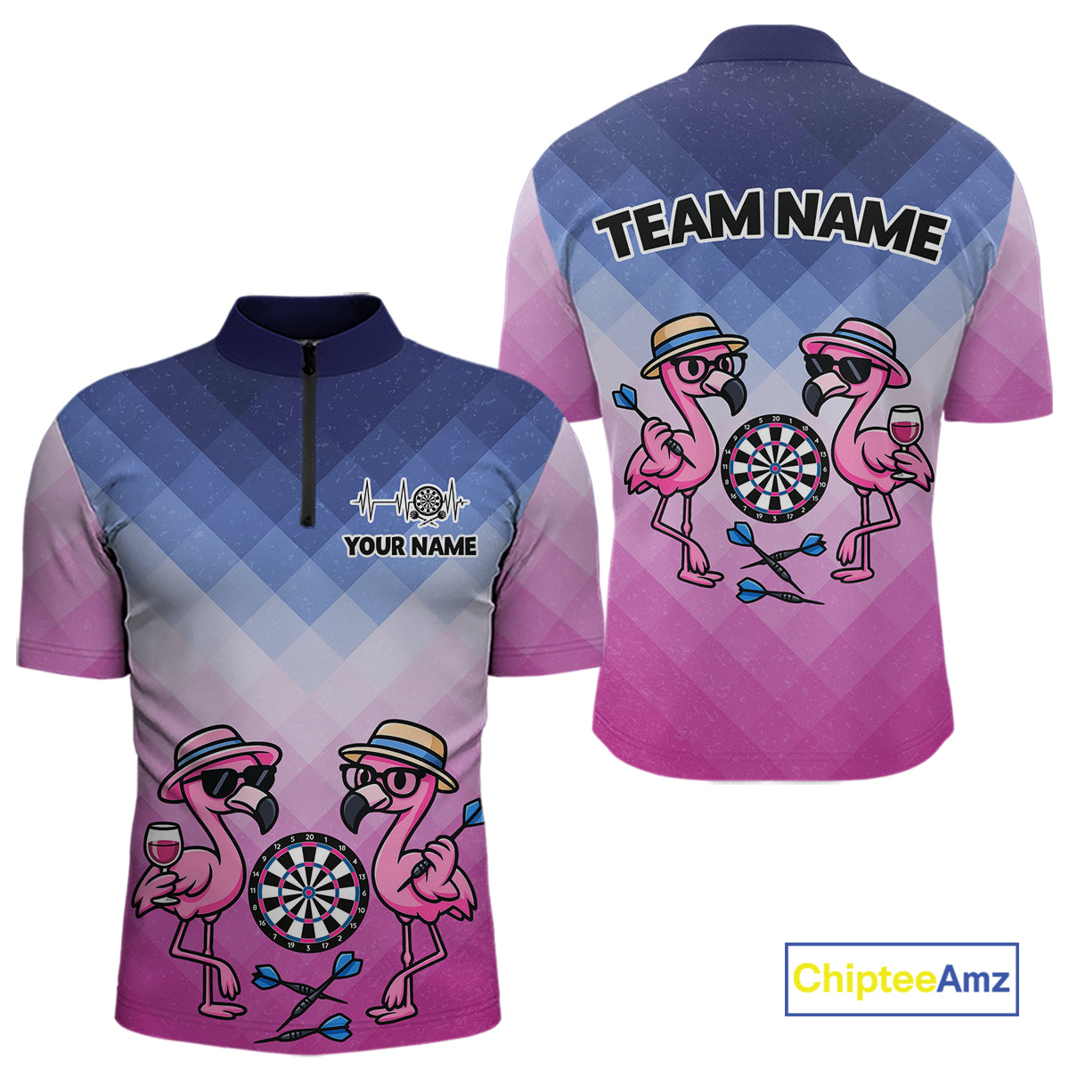 Custom Funny Pink Couple Flamingo Custom Dart Quarter-Zip Shirts For Men Dart Team Jerseys NYN2187