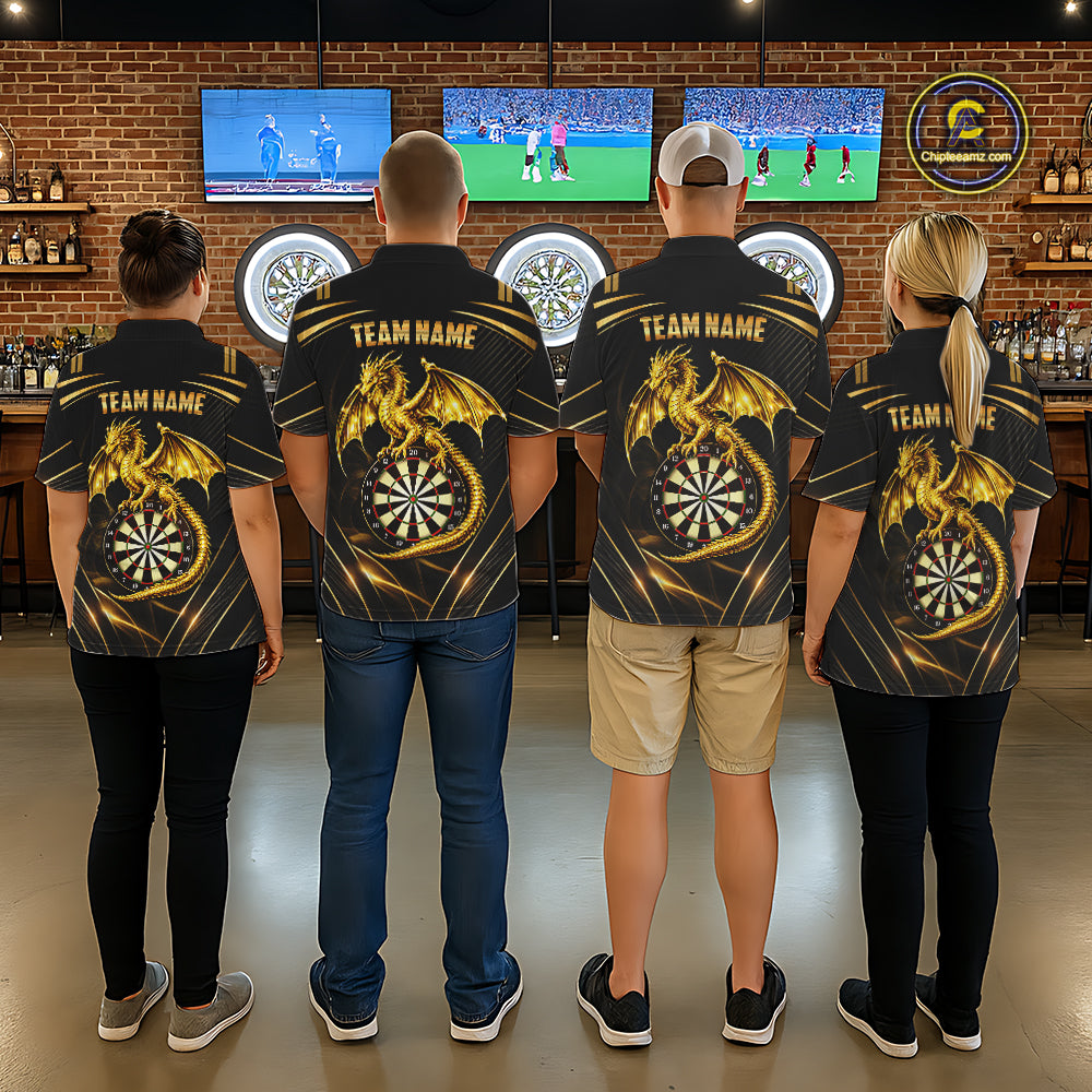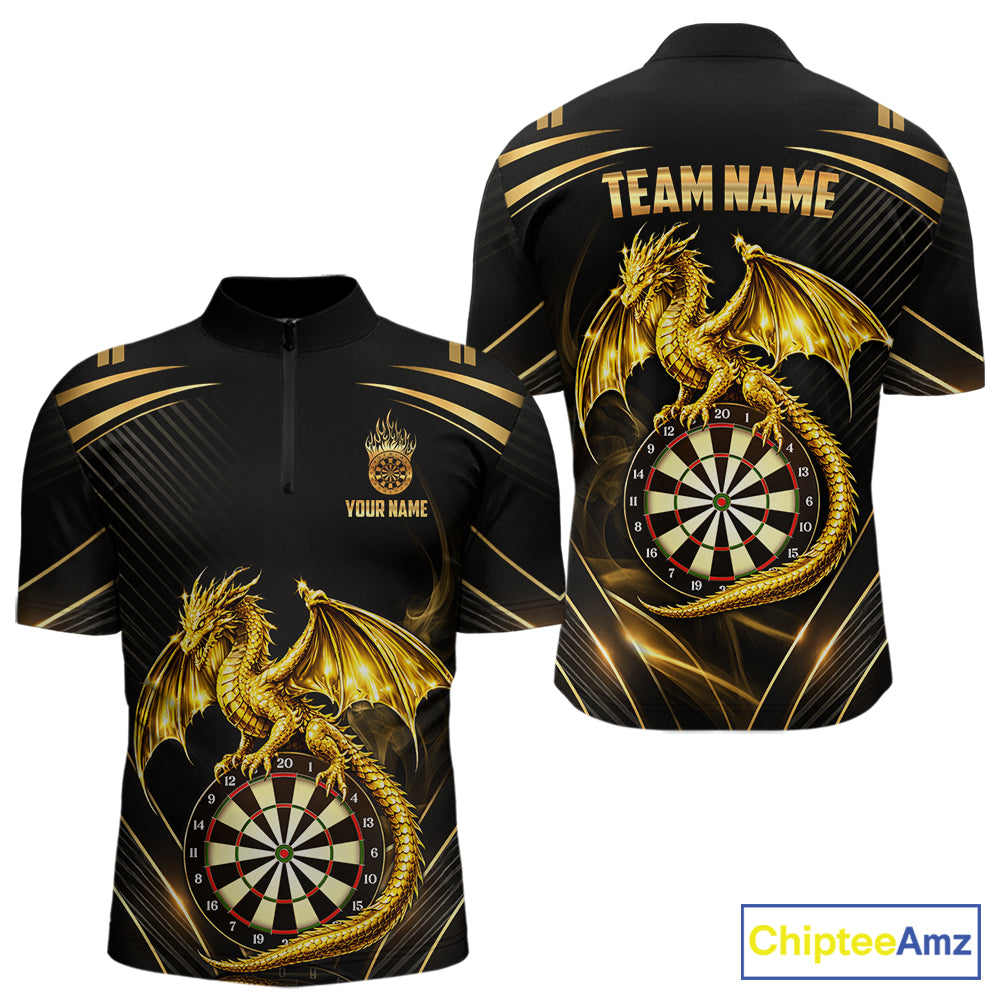 Gold Light Dragon Dartboard Custom Men Darts Quarter-Zip League Shirts Dragon Dart Jerseys NYN2236