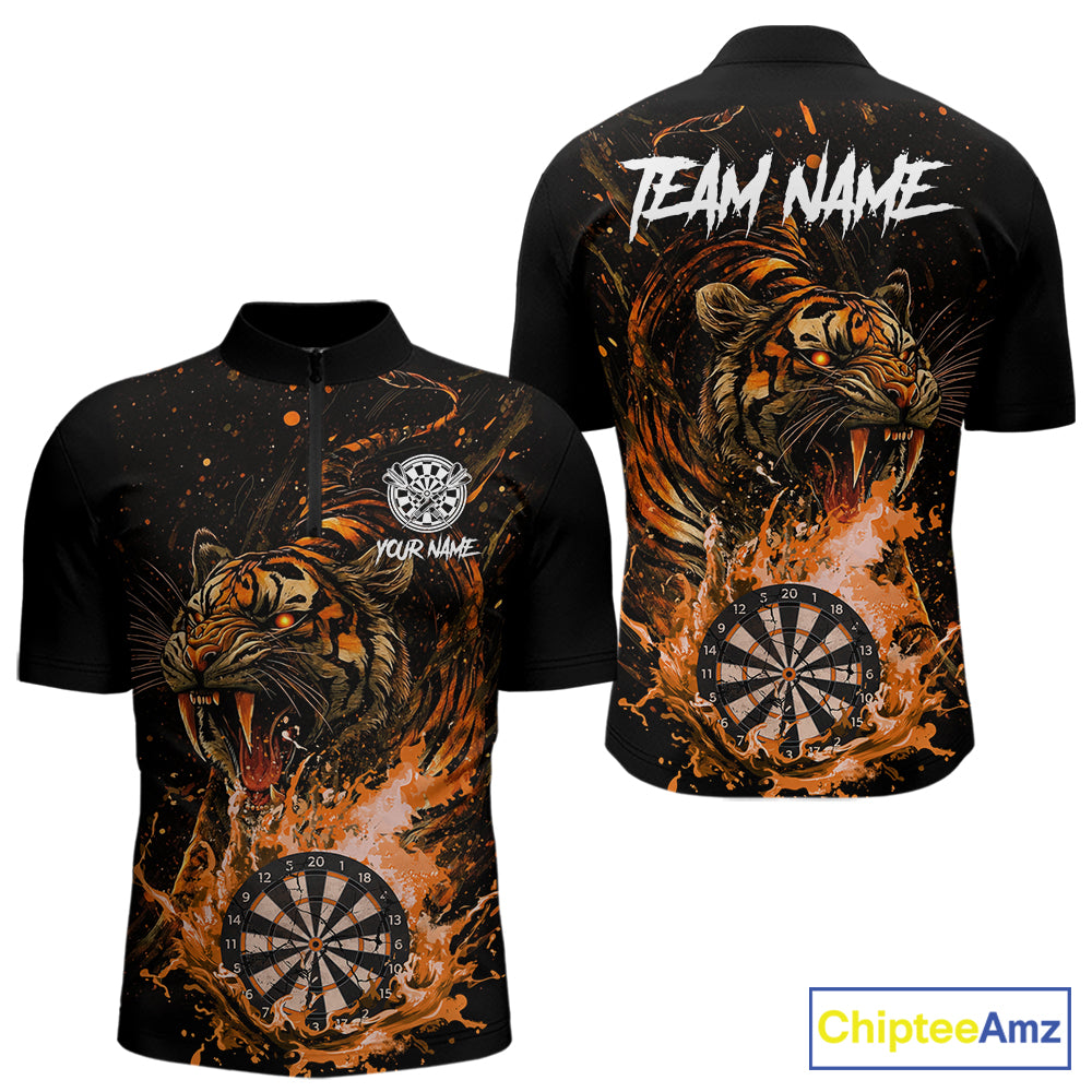Custom Orange Horror Tiger Grunge Men Darts Quarter-Zip League Shirts Splatter Dart Jerseys NYN2251