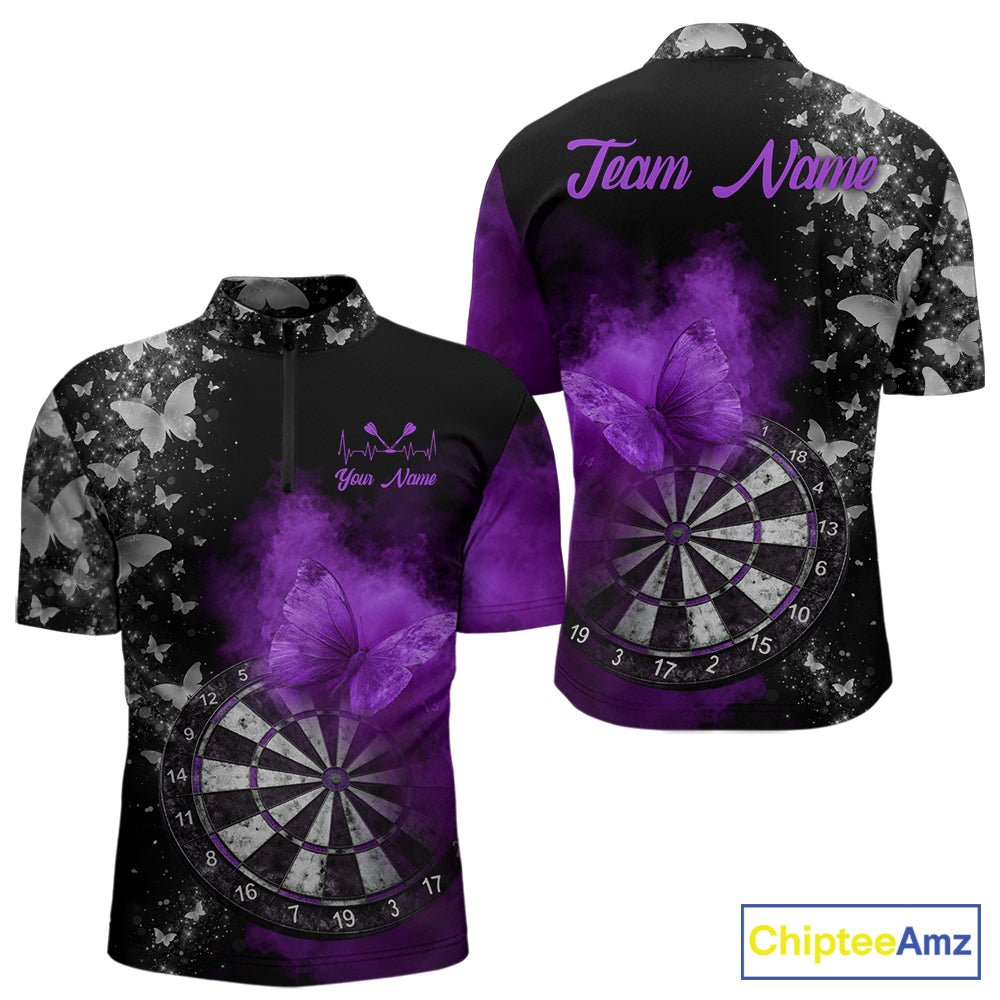 Custom Silver Butterfly Purple Smoking Grunge Dartboard Men Darts Quarter-Zip Shirts Dart Jerseys NYN2268