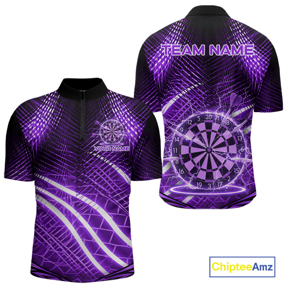 Black And Purple Stripes Light Dartboard Custom Darts Quarter-Zip Shirts Men Dart Team Jerseys NYN2275