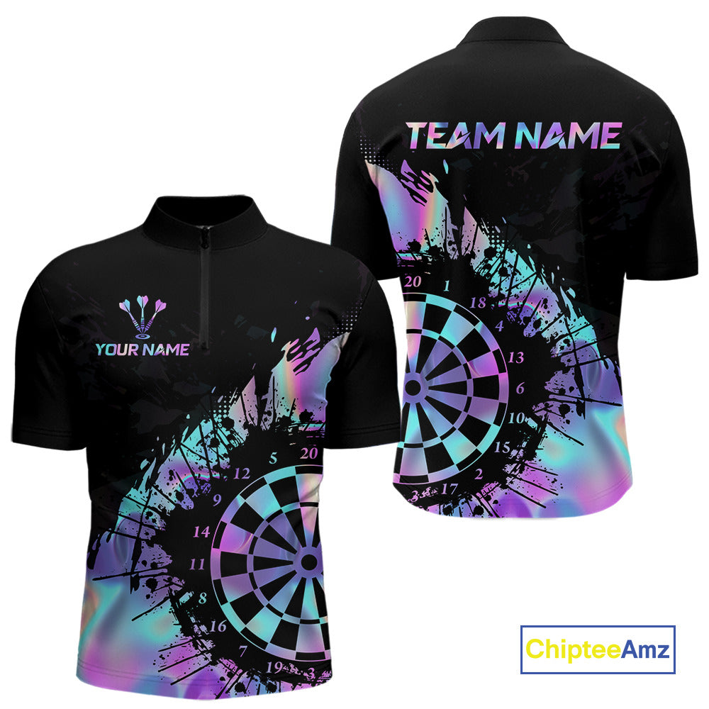 Purple Holographic Dartboard Grunge Dart Quarter-Zip  Shirts For Men Custom Name For Darters NYN2282