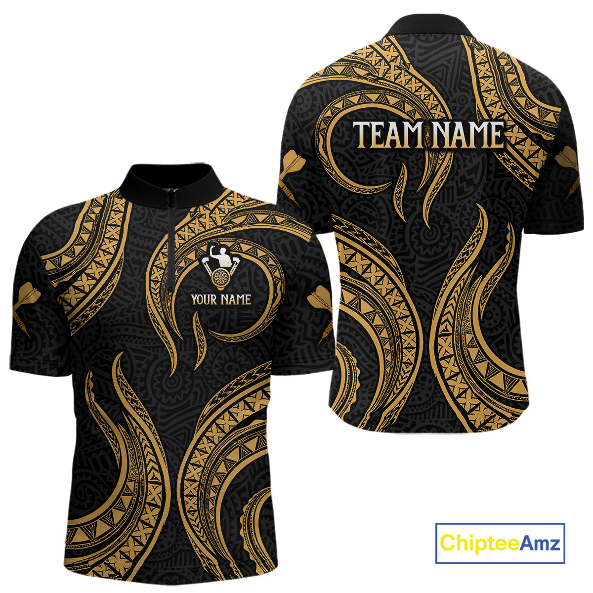 Black And Gold Tribal Human Play Dartboard Darts Quarter-zip Shirt Personalized Dart Jerseys For Men NYN2518