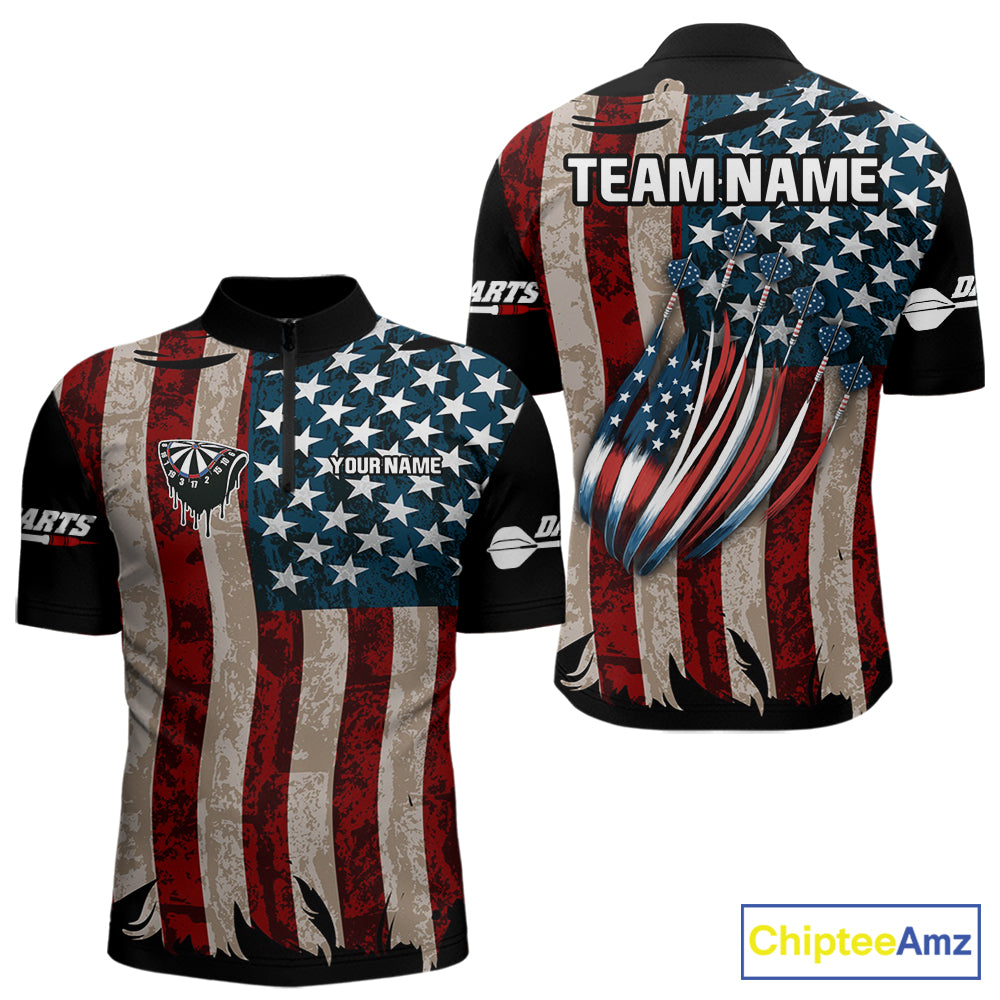 US Flag Dart Arrow & Dartboard Darts Quarter-zip Shirt For Men Custom Patriotic Dart Team Jerseys NYN2523
