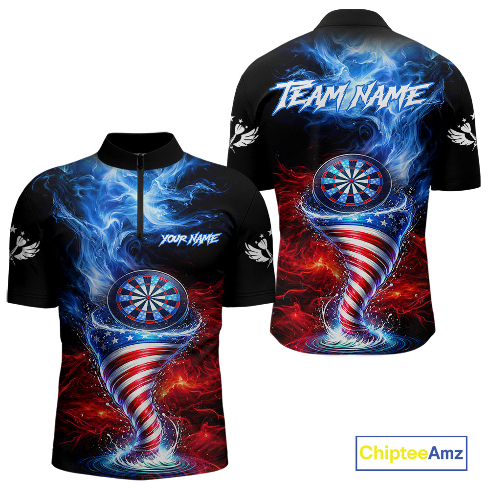 Blue & Red US Flag Dartboard Tornado Men Darts Quarter-zip Shirt Custom Patriotic Dart Team Jerseys NYN2524