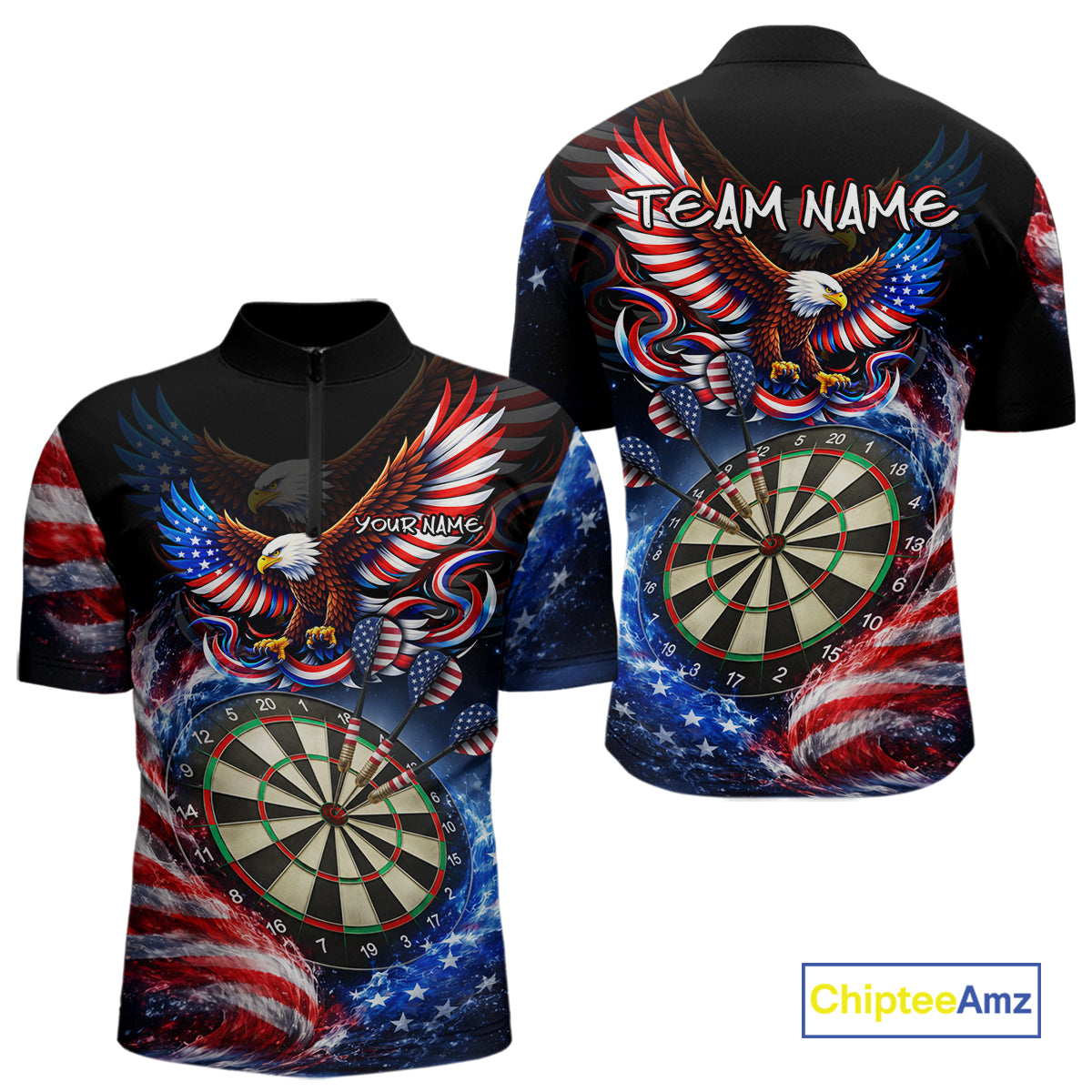 Eagle Dartboard US Flag Freedom Darts Quarter-zip Shirt Personalized Patriotic Men Dart Jerseys NYN2527